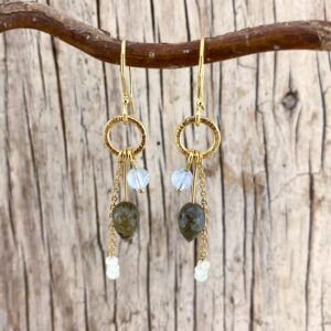 Håndlavede Cirkel Øreringe med Blågrøn Perle og Akvamarin